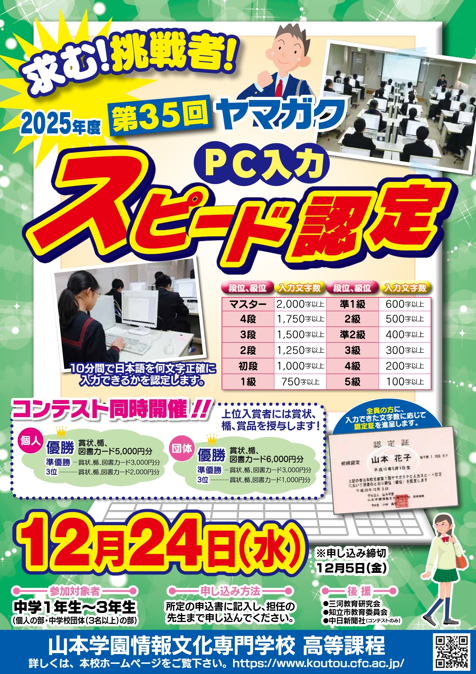 第34回 ヤマガクPC入力スピード認定結果はこちらをクリック